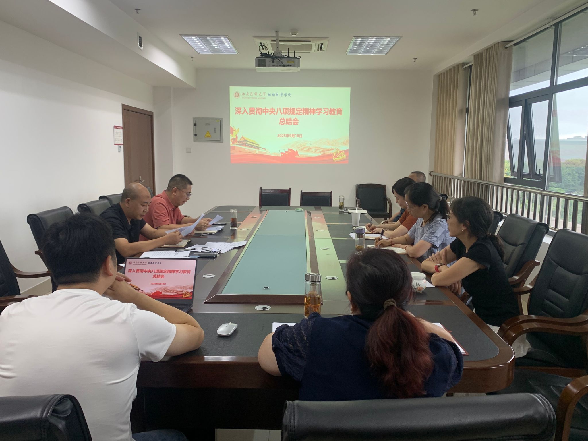 9月18日,继续教育学院党总支深入贯彻中央八项规定精神学习教育总结会在德诚楼1012会议室召开,学院全体党员参加,会议由学院党总支书记陈忠健主持。