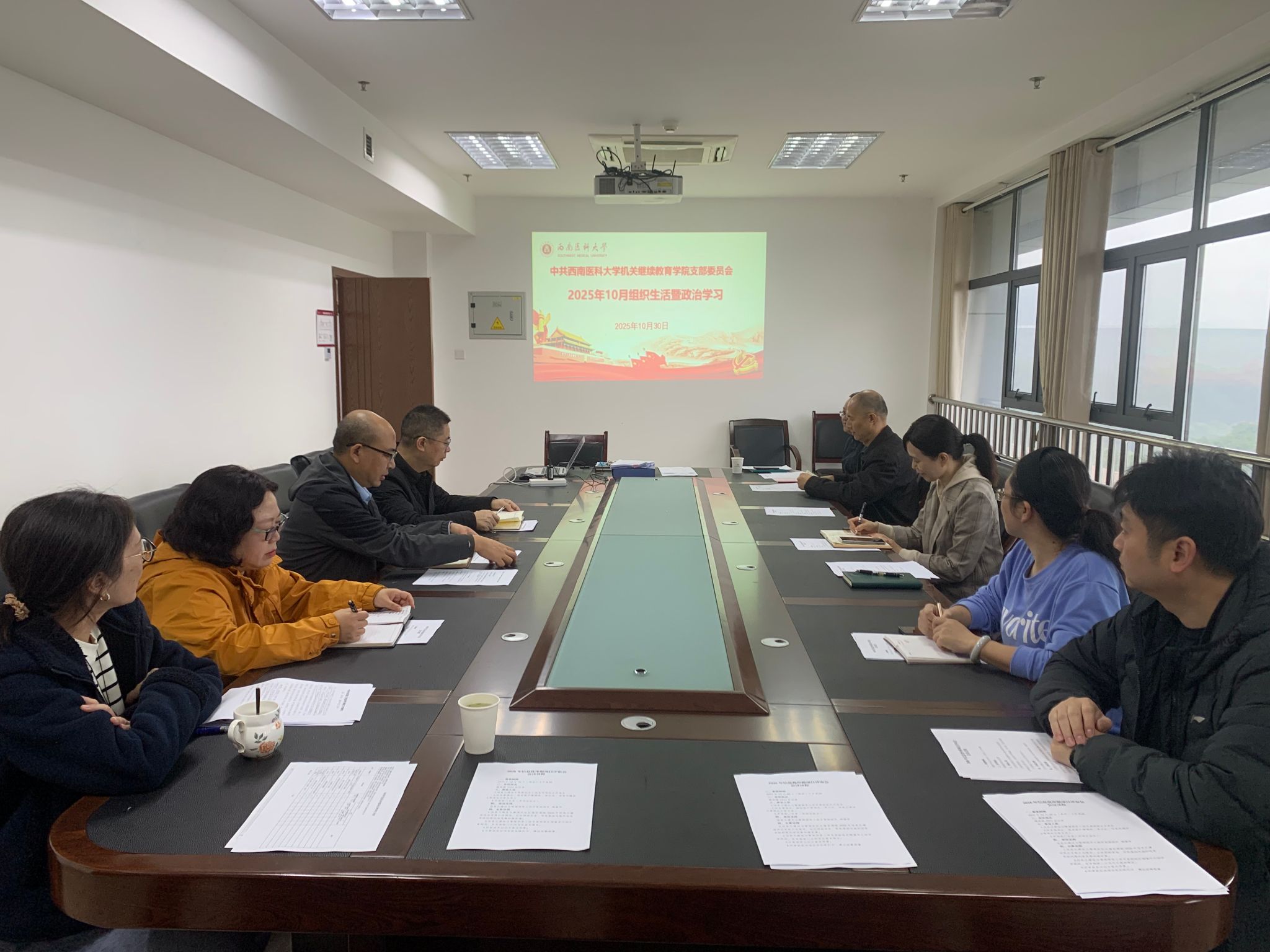 2025年10月30日,机关党委继续教育学院党支部在德诚楼1012会议室召开2025年10月组织生活暨政治学习。本次会议以“学习贯彻二十届四中全会精神,推动继续教育高质量发展”为主题。由支部书记杜杰主持,全院职工参加了此次会议。